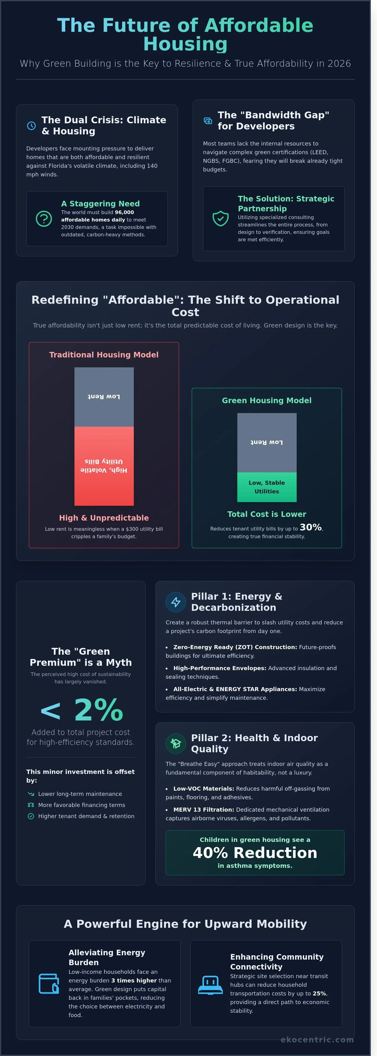 What if the perceived 20% price gap for sustainable materials is actually the key to shielding your 2026 projects from Florida’s increasingly volatile insurance premiums and rising energy costs? Most developers feel the pressure of limited bandwidth and worry that high-performance certifications will break an already tight budget. You likely agree that providing simple shelter isn't enough anymore. These homes must survive 140 mph winds and remain affordable to operate for families on fixed incomes. Integrating Green Building and Affordable Housing is no longer a luxury; it's a pragmatic strategy for long-term viability in a changing climate.